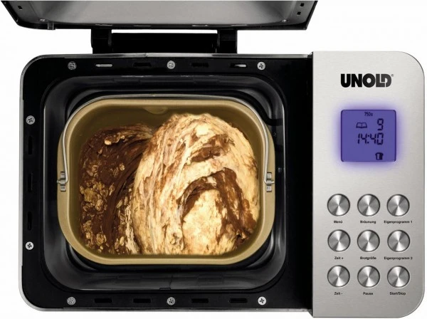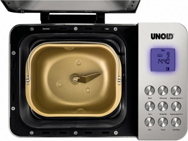 Durch 16 Programme für Brotteig bis 1.000 g, für Marmelade/Konfitüre und für Nudelteig wird die Zubereitung in der keramisch beschichteten Backform in der Tat meisterhaft. Alle Programme sind auch für glutenfreies Brot geeignet. Zahlreiche Funktionen machen die Herstellung von Brot, Marmelade und Nudeln kinderleicht: Warmhaltefunktion bis zu 60 Minuten, LCDDisplay, großes Sichtfenster und Pausenfunktion. Messbecher, Hakenspieß und leckere Rezepten sind inklusive.
