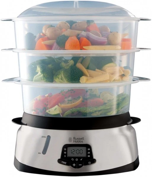 Zudem verfügt der MaxiCook Dampfgarer über ein digitales Display mit einstellbarer Garzeit und automatischer Abschaltung, das die punktgenaue Zubereitung der Speisen erlaubt.