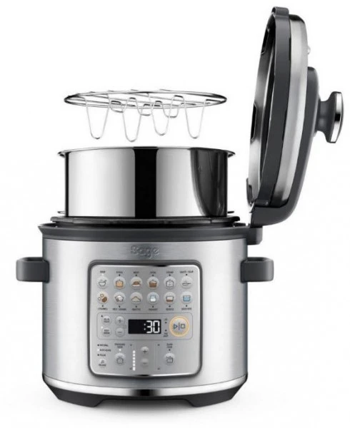 Mit drei automatischen Dampfabgabe-Einstellungen: „Natural“, die den Druck langsam im Inneren senkt, ohne dass Dampf freigesetzt wird; „Pulse“, die den Druck in Stößen freisetzt, um die Speisen weniger zu beeinträchtigen und „Auto Quick“, die den Druck schnell freisetzt, um ein Verkochen zu vermeiden.