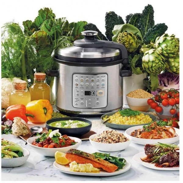 Mit 14 Schnellauswahltasten und Geräteeinstellungen auf Knopfdruck. Dazu gehören: Suppe, Fond, Fleisch, Eintopf, Dampfgaren, Sautieren, Hülsenfrüchte, Reis/Getreide, Risotto, Joghurt, Reduzieren und Sous-Vide.