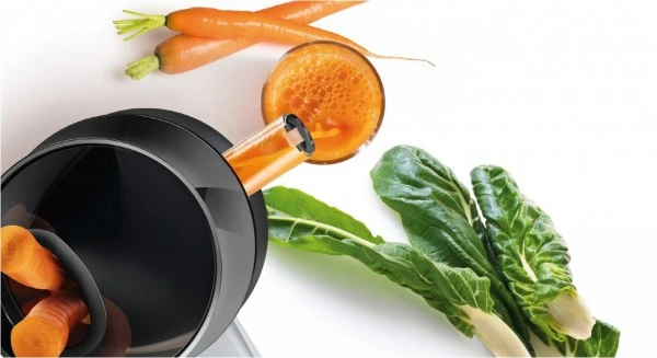 - Die einzigartige Technologie der langsamen Extraktion (55 U/min) ermöglicht es Ihnen, ein besseres Ergebnis zu erhalten – die Zutaten behalten ihre gesunden Inhaltsstoffe dank der sanften Pressung.