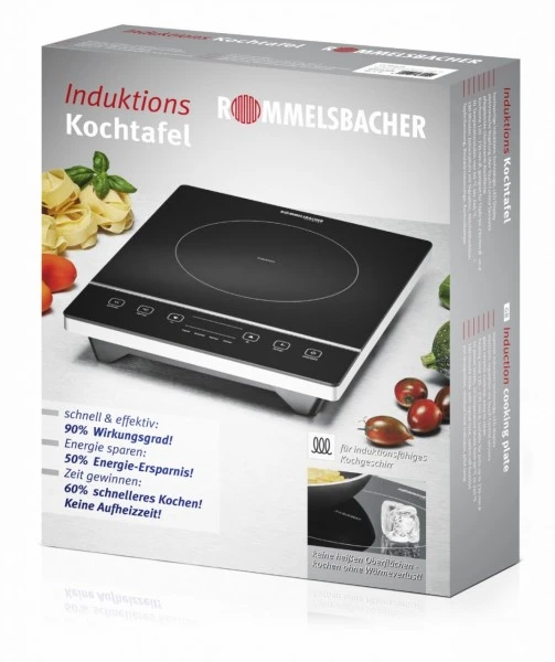 Modern und effizient kochen mit Induktion! Der hohe Wirkungsgrad dieser Technologie spart Energie, Zeit und Geld. Die Hitze wird direkt im Topfboden erzeugt, dadurch steht sie so schnell zur Verfügung wie bei einem Gasherd, nur erheblich sicherer. Die Kochfläche selbst nimmt nur die Abwärme des Topfes auf. Ob als Ergänzung zum bestehenden Herd oder als mobile Kochstelle für Single-Appartement, Ferienhaus oder Büro – Induktionskochtafeln sind überall schnell und flexibel einsetzbar. Die Regelung erfolgt je nach Bedarf über eine 10-Stufen Leistungswahl oder über eine Temperaturvorwahl (60 °C bis 240 °C.). Für hohen Benutzerkomfort stehen die Bedienung über Touch Control Sensoren, LED Anzeigen und die 180 Minuten Zeitschaltuhr. Eine automatische Abschaltung mit Signalton und die Restwärmeanzeige gewährleisten zusätzliche Sicherheit beim Betrieb. Es gibt viele gute Gründe, sich für eine ROMMELSBACHER Kochtafel mit Induktion zu entscheiden!