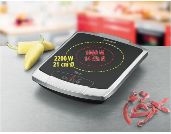Eine außergewöhnliche Einzelkochplatte, mit hochwertigem SCHOTT CERAN® Glaskeramik Kochfeld in einem eleganten Edelstahl Gehäuse im Softline Design. Diese freistehende Kochplatte ist ein Schmuckstück in jeder Küche. Die Ausstattung erfüllt alle Ansprüche: die HiLight® Heizzonen werden stromsparend über Touch Control in 9 Stufen geregelt. Die Zweikreis Lösung erlaubt die Zuschaltung einer extra großen Zone mit 210 mm Ø, perfekt für große Kochgefäße. Kontrolllampe und Restwärmeanzeige sind selbstverständlich. Überhitzungsschutz und Ankochautomatik bieten perfekte Sicherheit und besten Komfort.