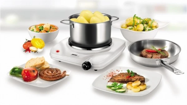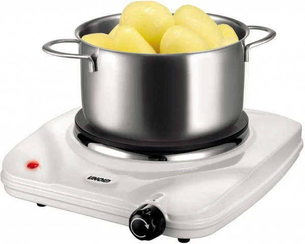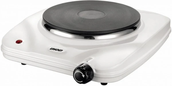 Auch wenn’s etwas eng ist, die Einzel-Kochplatte White von UNOLD® findet in jeder Küche ihr Plätzchen. Formschön und in elegantem Weiß gehalten bietet das kleine Küchenwunder viel Bedienkomfort und Leistung. Die stufenlos einstellbaren Temperaturschalter mit Kontrollleuchten sorgen dafür, dass nichts anbrennt, und die Thermosicherung schützt das Gerät vor Überhitzung. Mit einem Plattendurchmesser von 18,5 cm und 1.500 Watt Heizleistung lässt sie auch große Töpfe und Pfannen nicht kalt. Das Gewicht von 2,4 Kg macht sie standfest, trotzdem ist sie leicht zu transportieren und damit auch gern gesehener Gast auf Partys, auf denen es heiß hergehen soll.