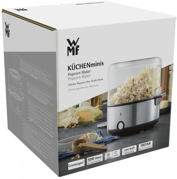 Endlich! Heimkinoabende zu zweit mit selbstgemachtem, knusprigen Popcorn. Einfach, schnell und sicher – die kompakte und zugleich leistungsstarke WMF KÜCHENminis Popcorn Maker bietet mit bis zu 2,2 l Füllmenge in wenigen Minuten unendlich viel Popcorn-Genuss.