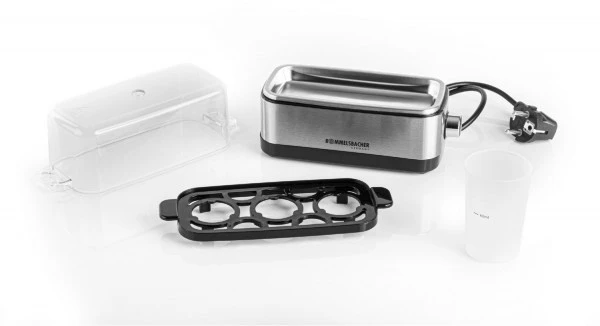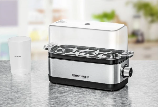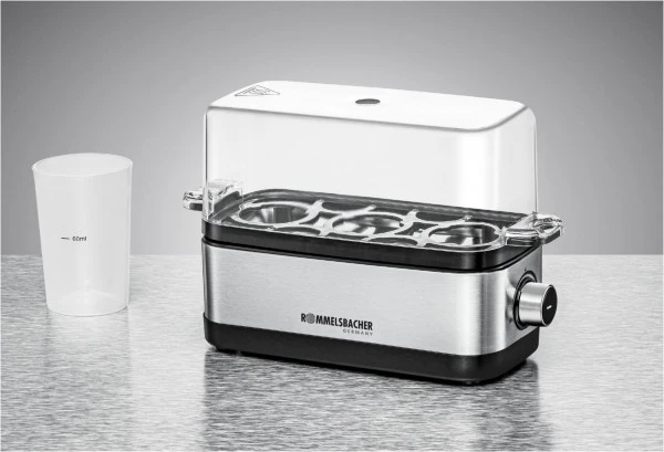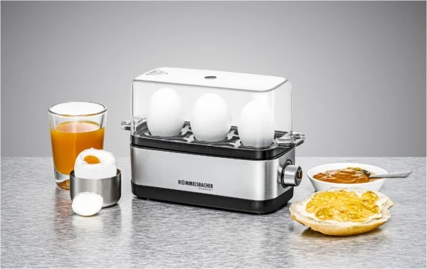 Mit diesem attraktiven Eierkocher für den kleinen Haushalt gart man bis zu drei Frühstückseier zuverlässig auf den Punkt. Hochwertige Materialien und ein einfaches Bedienkonzept überzeugen auch Morgenmuffel.