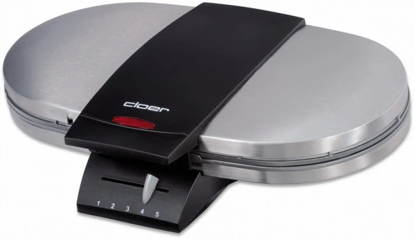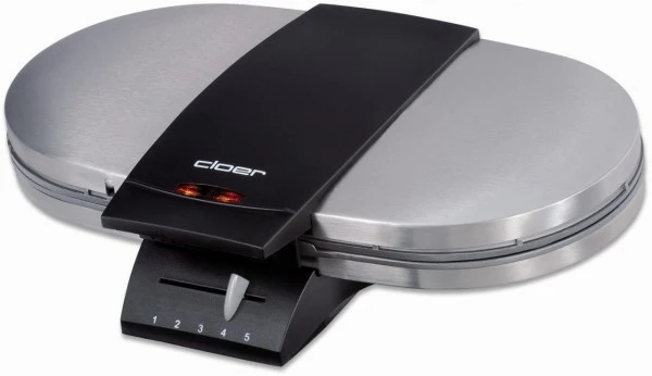 Der cloer 1329 Doppelwaffelautomat bereitet gleichzeitig zwei knusprige und lockere Waffeln zu. Den gewünschten Bräunungsgrad der Waffeln können Sie dabei stufenlos und selbständig wählen. Dank der guten Beschichtung des Innenraums des cloer 1329 Waffelautomat für zwei Waffeln brennt der Waffelteig kaum an. Sie müssen das Gerät also vorher nicht mit großen Stücken Butter oder Margarine einreiben, sondern können mit dem cloer Produkt auch fettarm und gesundheitsbewusst backen. Die Backfläche misst jeweils 16,5 Zentimetern, sodass die Waffeln ausreichend groß werden.