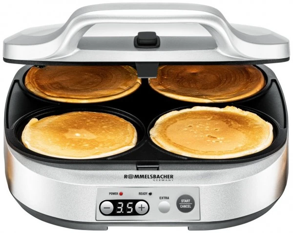 Das leistungsstarke Gerät heizt die vier großen, antihaftbeschichteten Backmulden in Minutenschnelle auf. Die Bedienung erfolgt bequem über Soft-Touch Tasten und das LED Display bietet guten Überblick. Die Aludruckguss Platten verteilen die Hitze optimal und sorgen für gleichmäßige Backergebnisse.